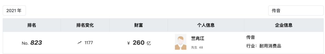 传音股价骤降背后,创始人竺兆江的财富明显缩水。《胡润全球富豪榜》显示,2026年,竺兆江的财富为125亿元,排名下跌763名,较2021年的260亿元缩水135亿元。
