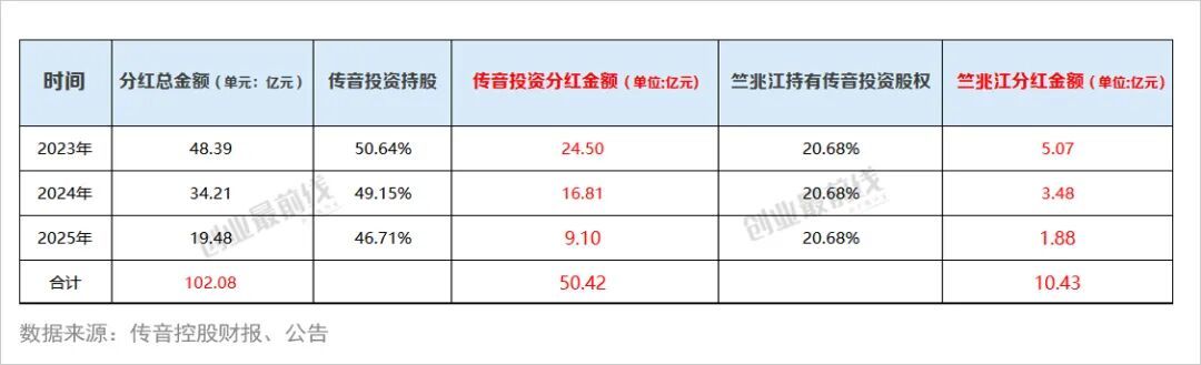 据「创业最前线」不完全统计,2023年至2025年,传音投资拿走的分红金额超过50亿元,其中,实控人竺兆江仅通过传音投资一个员工持股平台就拿走超10亿元分红。